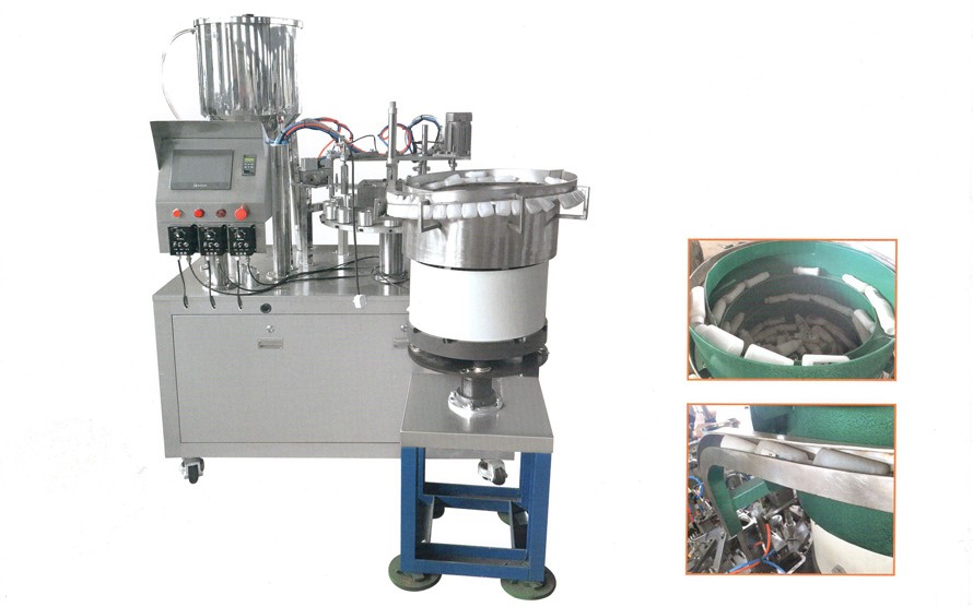 上瓶(人工/自动),灌装,上盖(人工/自动),旋盖,出瓶,胶水瓶的灌装旋盖